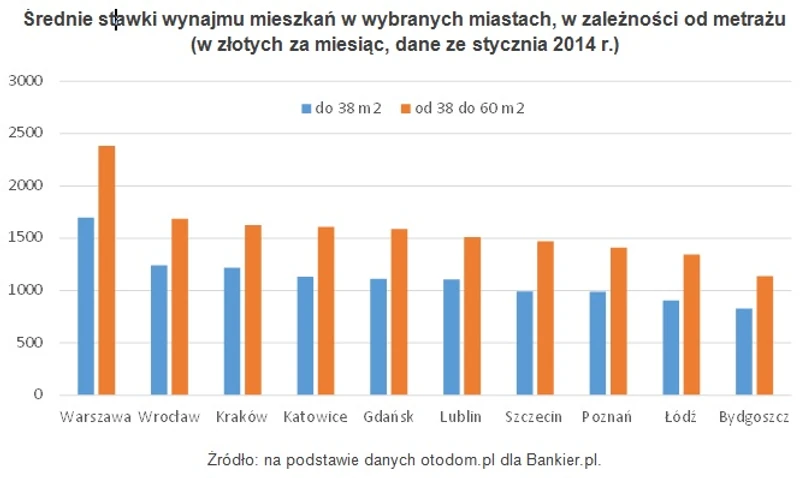 W 2013 r. przeciętne miesięczne wynagrodzenie brutto w gospodarce wynosiło 3650 zł, czyli około 2600 zł „na rękę”. Koszt wynajmu kawalerki lub niewielkiego dwupokojowego mieszkania w Warszawie to 1200-1500 zł., czyli mniej więcej tyle, ile wynosi rata kredytu hipotecznego. W innych miastach proporcje są analogiczne. Zestawiając te dwie wielkości, otrzymujemy odpowiedź na pytanie, dlaczego w Polsce, w porównaniu z innymi krajami, mieszkanie w wynajmowanym lokalu jest mało popularne i traktowane jako zło konieczne i stan przejściowy, który jak najszybciej chcielibyśmy zmienić, kupując własne mieszkanie.
