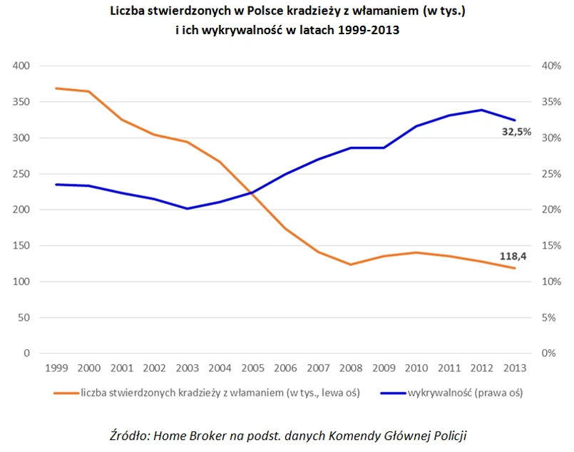 Z ankiety przeprowadzonej przez firmę ochroniarską Zakłady Usługowe EZT S.A. wynika, że zamek antywłamaniowy ma mniej niż co piąte mieszkanie, a alarm jedno na 17. I choć policyjne statystyki pokazują, że kradzieży z włamaniem jest ponad dwa razy mniej niż dziesięć lat temu, to nadal rocznie notuje się ich ponad 100 tysięcy. Niestety, ich wykrywalność jest niewielka, bo wynosi 32-33 proc., warto więc zabezpieczyć się samodzielnie.