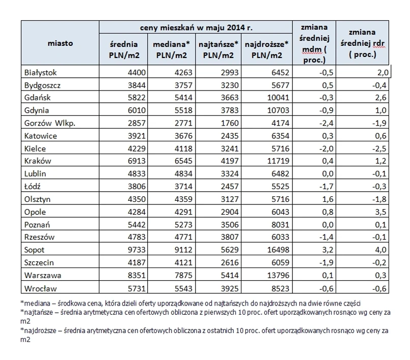 W porównaniu z majem roku ubiegłego ceny mieszkań używanych w 9 miastach wzrosły – średnio o 1,7 proc., i również w 9 spadły – średnio o 0,9 proc.