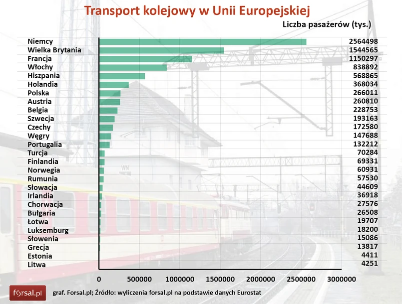 Pod względem całkowitej długości sieci kolejowej w Europie liderem jest Francja. Zaraz za nią plasują się Niemcy, Polska oraz Wielka Brytania. Odzwierciedla to oczywiście wielkość tych państw. Pod względem kilometrów przypadających na obywatela liderem jest są z kolei Włochy – tam sieć kolejowa jest najgęstsza. Wysoko pod tym względem znajduje się też Litwa.