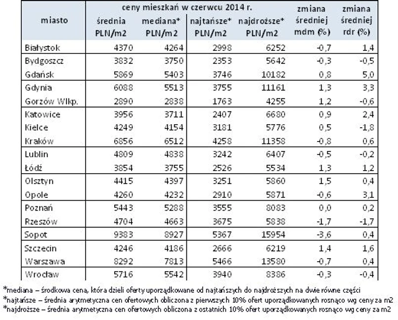 W porównaniu z czerwcem 2013 roku średnie ceny ofertowe są dziś niższe w 6 miastach, a w 12 nastąpił ich wzrost - wynika z lipcowego raportu portalu nieruchomości Domy.pl i firmy doradztwa finansowego Open Finance.