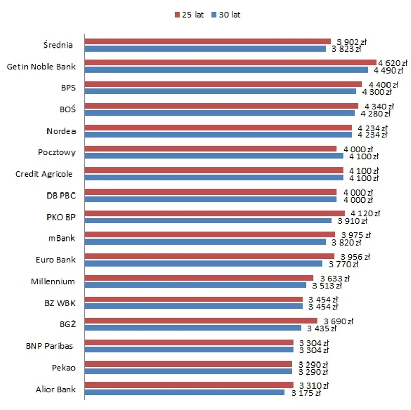 Największych cięć wymaganych zarobków (około 500 zł) dokonały: BGŻ, Pocztowy i BZ WBK, o prawie 300 zł uszczuplił minimalne dochody mBank, a o ponad 100 zł Alior. Z kolei od 80 do 130 zł podniosły próg dochodów: Credit Agricole, Getin Noble Bank i EuroBank.