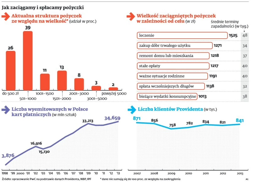 Według nieoficjalnych informacji, jakie uzyskał DGP, pożyczkodawca prowadzi rozmowy na temat kart z MasterCardem, jedną z dwóch najważniejszych organizacji wydających karty płatnicze na świecie. Biuro prasowe MasterCarda w Polsce nie chciało wczoraj tej informacji komentować. Jednak klient o takim potencjale jak Provident może być łakomym kąskiem dla każdego gracza na tym rynku – ma ponad 800 tys. klientów. Dla porównania w 2013 r. w Polsce wyemitowanych było ponad 34 mln różnych kart płatniczych. Wejście tylko Providenta teoretycznie dawałoby więc szanse na wzrost rynku o ok. 3 proc.