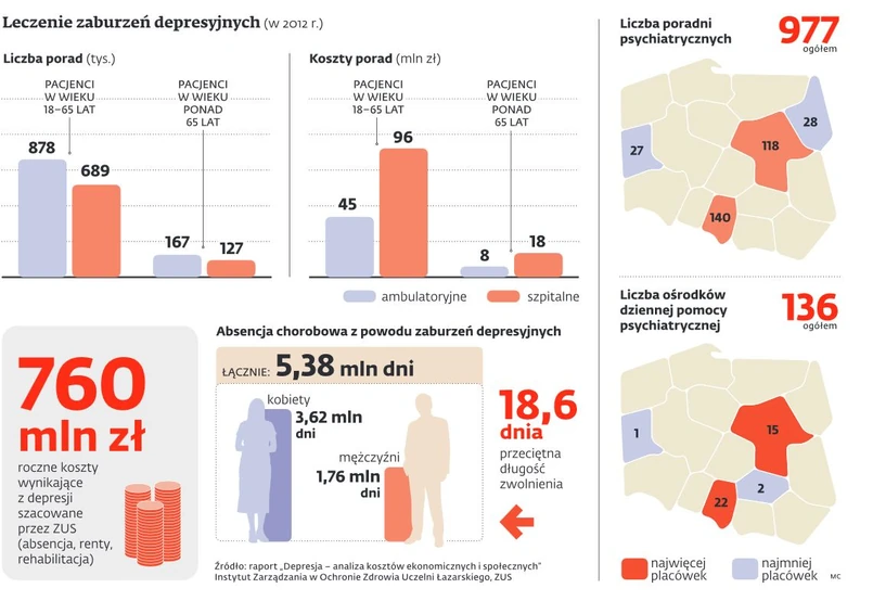 Jak tłumaczy jeden z lekarzy, kobiety częściej korzystają z opieki medycznej, łatwiej też przyznają się do depresji. Różnice dotyczą nie tylko płci, ale także miejsca zamieszkania. Najwięcej orzeczeń rentowych jest wydawanych na Śląsku, w Łódzkiem oraz na Podkarpaciu. Najmniej w Pomorskiem, Świętokrzyskiem i na Podlasiu. Najlepsza dostępność do lekarza jest na Śląsku. Najgorsza w województwie świętokrzyskim.