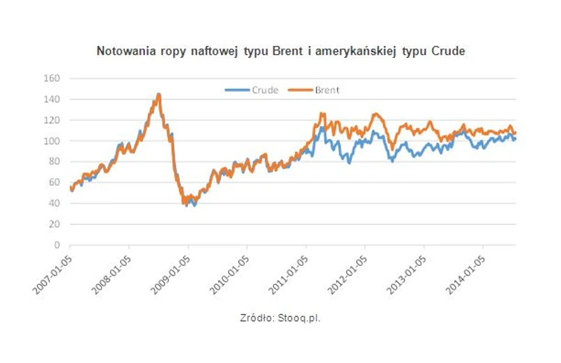 Z tego punktu widzenia bardziej klarowne są tendencje zachodzące w Stanach Zjednoczonych, coraz bardziej uniezależniających się od importu ropy i innych surowców energetycznych. Tu różnica między bieżącymi notowaniami ropy, a jej poziomem sprzed kryzysu jest o wiele mniejsza niż w Europie i wynosi zaledwie 6 proc. To najpewniej efekt wzrostu wydobycia oraz boomu łupkowego, a w mniejszym stopniu osłabienia gospodarki. Mimo to, w ciągu ostatnich trzech lat wyraźnie widoczna jest zwyżkowa tendencja notowań amerykańskiej ropy typu Crude. Od czasu załamania z jesieni 2011 r. jej ceny poszły w górę z 78 do 102 dolarów, czyli o ponad 30 proc. Sporą część tej zwyżki trzeba przypisać poprawiającej się sytuacji w amerykańskiej gospodarce. Z tego punktu widzenia szczególnie charakterystyczna jest zbieżność kierunku cen ropy i gospodarki od początku 2014 r., traktując oczywiście spadek PKB w pierwszym kwartale jako jednorazowy „wypadek przy pracy”, spowodowany wyjątkowo ciężką zimą, która jednocześnie sprzyjała zwyżce cen surowców energetycznych.