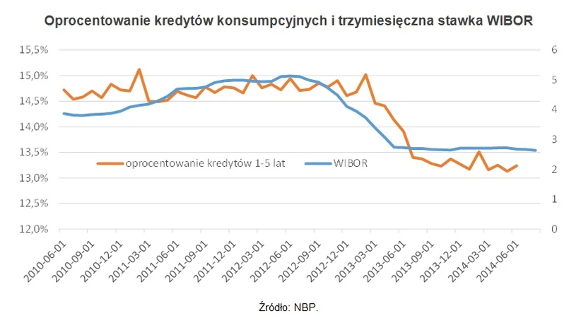 W ślad za tym maleją rynkowe koszty pieniądza. Stawka 3 miesięczna WIBOR (WIBOR3M), stanowiąca podstawę ustalania przez banki wysokości oprocentowania kredytów sięga 2,64 proc. i wszystko wskazuje na to, że może się jeszcze nieco obniżyć. A w każdym razie będzie się stabilizować na podobnym poziomie jeszcze przez dłuższy czas. W ciągu ostatnich piętnastu miesięcy jej wysokość zmieniała się w bardzo niewielkim stopniu. W maju 2013 r. wynosiła 2,74 proc.