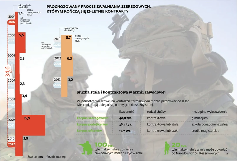 – Powinni odpowiednio wcześniej rozpocząć proces rekrutacji kandydatów na miejsce odchodzących szeregowych – dodaje.