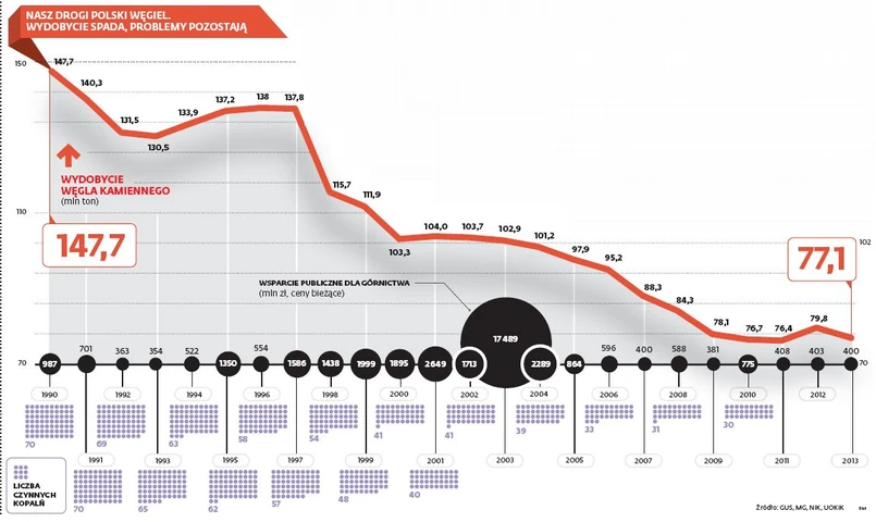 Górnictwo to w Polsce branża strategiczna. Przede wszystkim dlatego, że na węglu opiera się cała energetyka. Ponad połowa rocznie wydobywanego węgla kamiennego i prawie całe krajowe wydobycie brunatnego trafia do polskich elektrowni, elektrociepłowni i ciepłowni. Przykład: dane za 2012 r. (najświeższe, jakie na ten temat opublikował GUS). Krajowe wydobycie węgla kamiennego wynosiło wówczas 79,8 mln ton. Do wytworzenia energii użyto 46 mln ton. Dla węgla brunatnego te liczby to 64,3 mln ton (wydobycie) i 63,3 mln ton (zużycie w energetyce).