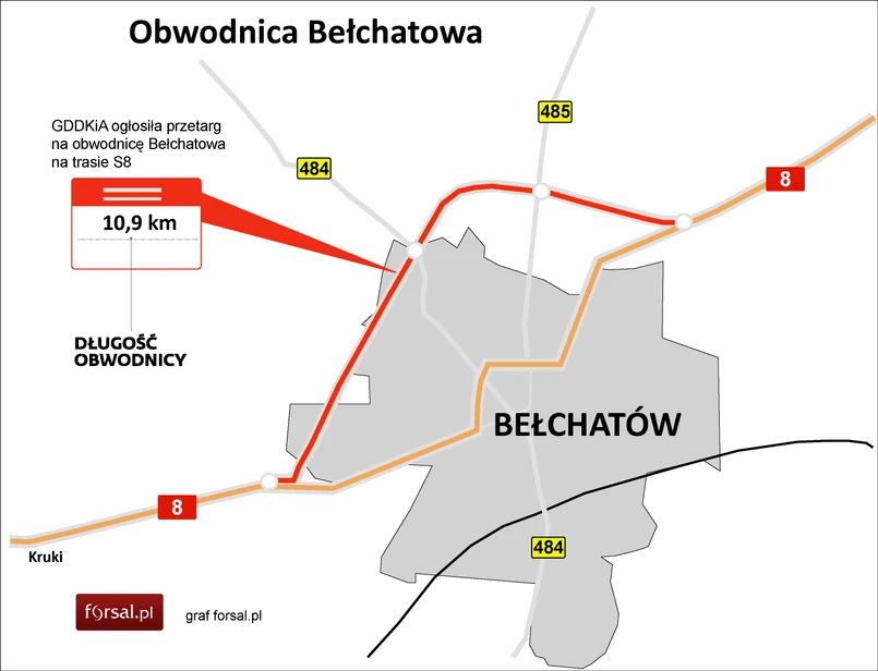 "Nowa trasa (klasy GP - główna ruchu przyspieszonego) będzie miała 11 kilometrów długości i zostanie wybudowana w systemie 2 + 1, czyli będzie miała 3 pasy ruchu (po 3,5 metra szerokości każdy). Dwa w jednym kierunku i jeden w przeciwnym, naprzemiennie. (...) Wzdłuż nowej drogi powstaną też cztery węzły drogowe, umożliwiające komunikację z innymi drogami (drogą krajową nr 8, drogami wojewódzkimi; 484 i 485), a także kilka wiaduktów" - czytamy w komunikacie.