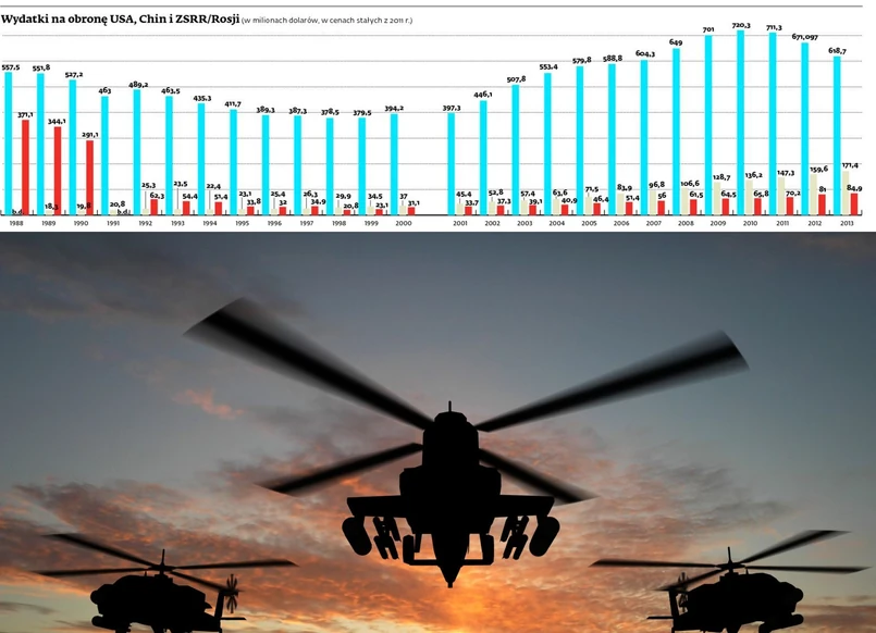 Trzeba było zdecydować się na oszczędności, które dotknęły też budżet obronny. W bieżącym stuleciu osiągnął on szczyt w roku podatkowym 2010 (690 mld dol.) i od tego czasu cały czas spada – w bieżącym roku finansowym 2015 jest to już tylko 575 mld dol. To oczywiście wciąż najwięcej na świecie (i prawie dwa razy tyle, co przed atakami z 11 września 2011 r.), ale różnica między USA a drugimi w kolejności Chinami i trzecią Rosją stopniowo się zmniejsza. Według SIPRI pomiędzy 2004 a 2013 r. chińskie wydatki na zbrojenia wzrosły o 170 proc., a rosyjskie o 108 proc. Stany Zjednoczone pod niemal każdym względem mają militarną przewagę nad resztą świata, są jedynym państwem, które jest zdolne do niemal natychmiastowej interwencji w dowolnym miejscu na Ziemi – i zapewne tak pozostanie jeszcze przez dłuższy czas – ale też nie da się ukryć, że kryzys nieco te możliwości ograniczył.