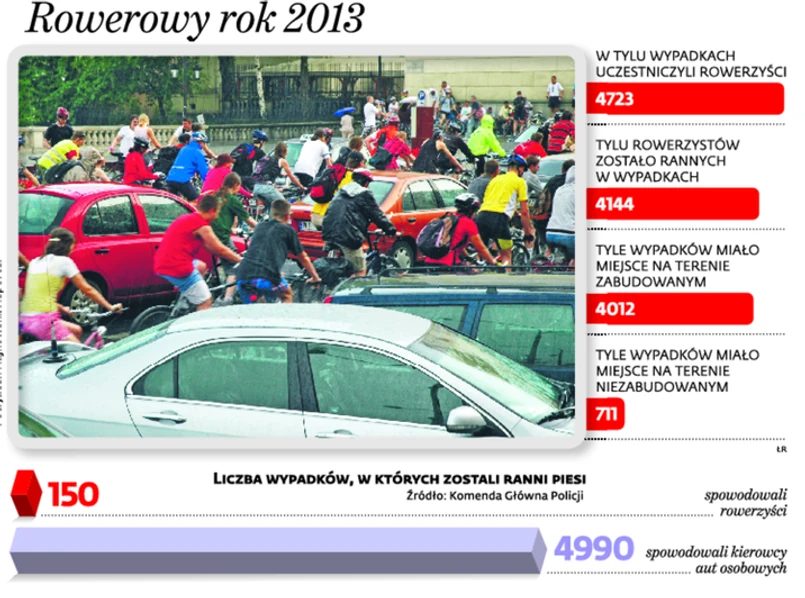 – Problem jest poważny. Rowerzyści muszą mieć świadomość tego, że korzystając z dróg publicznych, mają takie same prawa i obowiązki, jak samochody. Trudnością jest to, że ich zachowania na drodze często są nieprzewidywalne. Bywa, że nie sygnalizują swoich manewrów, jak np. skręt w lewo – twierdzi Marek Konkolewski z Biura Ruchu Drogowego Komendy Głównej Policji. – Czasem cykliści koncentrują się tylko na tym, że na dwóch kółkach jest zdrowo i ekologicznie, a zupełnie zapominają o aspekcie bezpieczeństwa – dodaje.