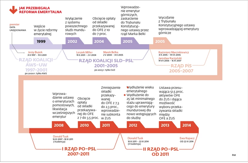 To będą zmiany strukturalne – zapewniał rząd, gdy podwyższał wiek emerytalny czy likwidował prawo do wcześniejszych świadczeń. Ale niedługo po wprowadzeniu tych zmian okazuje się, że ich głównym beneficjentem jest państwowa kasa. Z dokumentu, jaki Ministerstwo Finansów przygotowało dla Rady Europejskiej, wynika, że reformy emerytalne są jednym z najbardziej skutecznych działań ograniczających deficyt finansów publicznych. Resort pochwalił się przed Radą wprowadzeniem zmian, które w tym i przyszłym roku mają dać naszemu budżetowi 46 mld zł oszczędności. I nie ukrywa, że dwie trzecie tej kwoty pochodzi z emerytur.