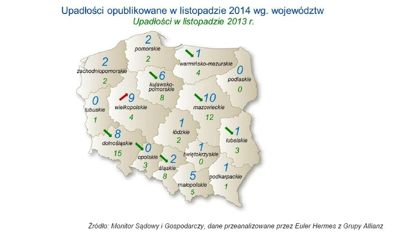 ich liczba była niższa niż przed rokiem, w drugim wzrosła - w listopadzie 2013 splajtowały tam 4 spółki teraz 9.