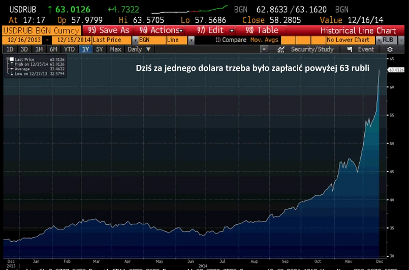 „W dużej mierze to co dzieje się w Rosji, to efekt odpływu zagranicznego kapitału, spowodowany zmianą długoterminowych perspektyw. Rosja w świetle spadających cen ropy nie wygląda na miejsce, w którym długoterminowo warto inwestować pieniądze” – komentuje Dmitrij Dudkin z Uralsib Financial Corp.