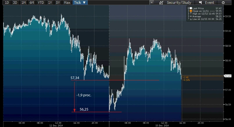 Analitycy spodziewają się, że ceny ropy mogą spaść jeszcze bardziej. Organizacja Krajów Eksportujących Ropę Naftową OPEC postanowiła wczoraj nie zmniejszać wydobycia, aby doprowadzić do podwyżki cen. Zdaniem Organizacji, obniżenie wydobycia miałoby tylko niewielki wpływ na sytuację na rynku.