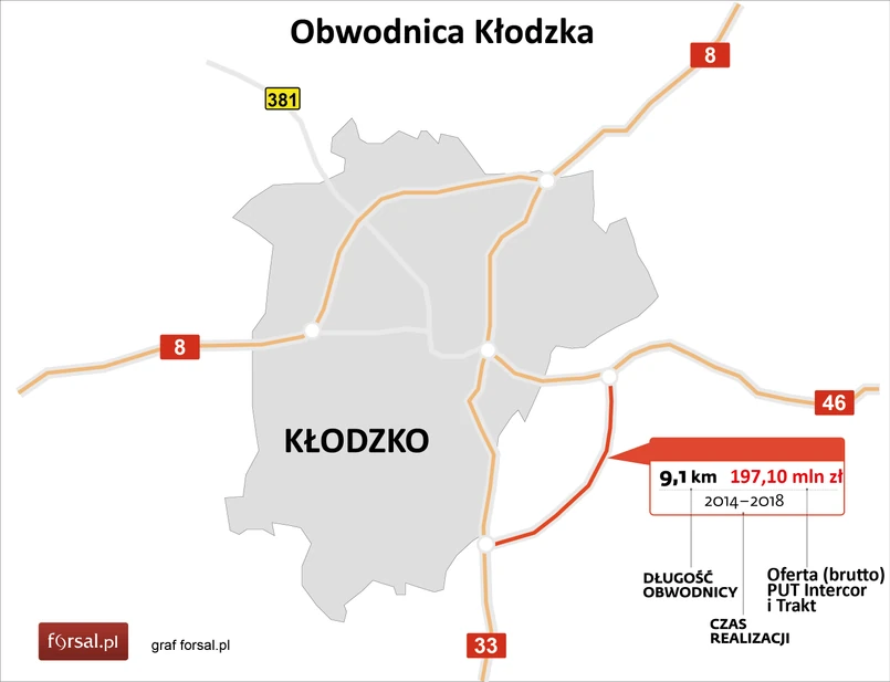 Obwodnica Kłodzka połączy drogi krajowe nr 8 i nr 33 z drogą krajową nr 46 na kierunku północ-południe. Obwodnica i łącznik z drogą krajową nr 46, mają mieć długość około 9,2 km. Inwestycja ma być realizowana w systemie "projektuj i buduj".