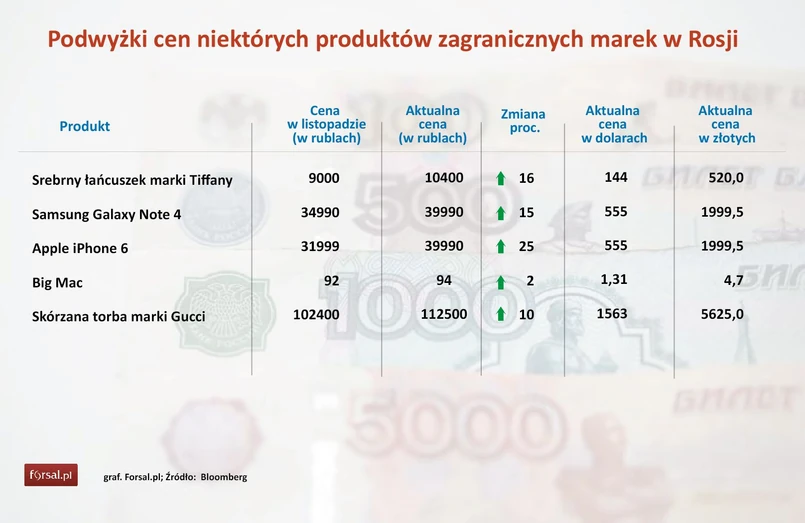 Podobną ścieżką idą inne zagraniczne marki. 3 grudnia McDonald’s podniósł cenę Big Maca o 2,2 proc. do ok. 94 rubli (ok. 4,7 zł). Niewiele to pomogło, bowiem w przeliczeniu na dolary wartość kanapki spadła na początku tygodnia do ok. 1,35 dol. z 1,77 dol.