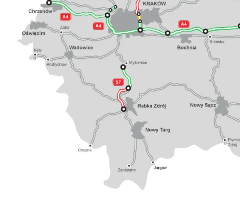Odcinki stanowią część połączenia między Krakowem a Zakopanem, tzw. Zakopianki.