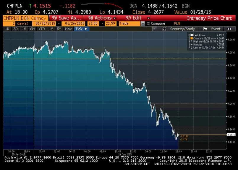 Na wczorajszym zamknięciu kurs franka utrzymywał się na poziomie 4,26 zł.