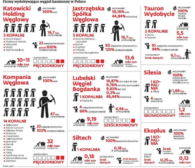 – Zarząd spółki, ze względu na jej sytuację finansową, nie może pozwolić sobie na dalszą uległość i musi podejmować starania o rozładowanie napięcia i przekonanie strony społecznej do ustępstw. Tym bardziej że jego propozycje nie są wygórowane. To korekty dotyczące wysokości wynagrodzeń w 2015 r., ograniczenia deputatów czy dopłat do zwolnień lekarskich, a nie znaczącej redukcji zatrudnienia – zauważa Chmal. Szefostwo JSW nie planuje ani zwolnień, ani zamykania kopalń.