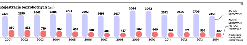 Co ważne, w tej grupie aż 80 proc. osób rejestrowało się w pośredniakach po raz kolejny – wynika z danych GUS. Natomiast bezrobotnych zarejestrowanych po raz pierwszy było w ubiegłym roku 487 tys. Ich liczba także spadła – była o 13 proc. mniejsza niż 2013 r. i najmniejsza od siedmiu lat.