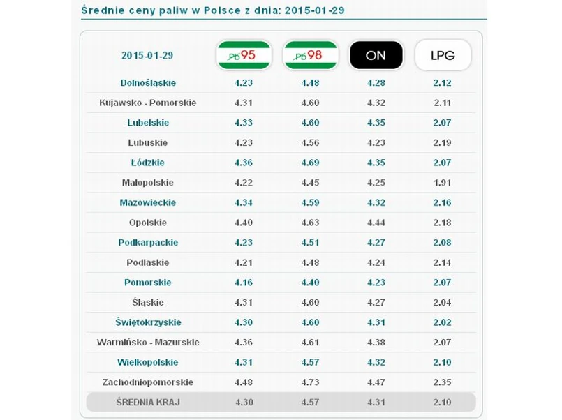 | paliwo | cena | zmiana w porównaniu do cen z 23-01-2015 |
