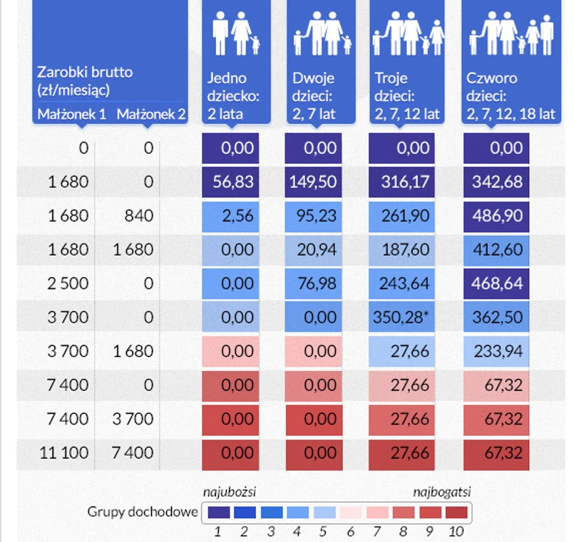 Planowane zmiany w systemie pomocy rodzinie są więc krokiem w dobrym kierunku, zgodnym z duchem reformy z 2004 r. wedle której świadczenia rodzinne mają przysługiwać nie tylko najuboższym rodzinom. Jak podaje Centrum Analiz Ekonomicznych CeneA (cenea.org.pl) reforma systemu doprowadzi do poprawy sytuacji 260 tysięcy rodzin, których dochody są nieco wyższe, niż ustalone progi. „W przypadku rodziny z jednym dzieckiem korzyści w wyniku proponowanego rozwiązania uzyskują rodziny o zarobkach w przedziale 2 180 – 2 285 zł miesięcznie, z dwójką dzieci – 2 870 – 3 140 zł i z trójką dzieci – 3 455 – 4 005 zł miesięcznie”. Autorzy tego opracowania twierdzą, że reforma ukróci także takie zjawiska jak ograniczanie zatrudnienia i praca w szarej strefie w celu uniknięcia przekroczenia progu dochodowego.