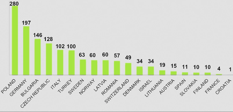 Znaczącymi kierunkami eksportu w minionych dwunastu miesiącach były także Bułgaria (146 sztuk), Czechy (128 sztuk) i Włochy (102 sztuki). W podsumowywanym okresie autobusy marki Solaris po raz pierwszy trafiły też do Turcji. Stało się to za sprawą wygranego i zrealizowanego przetargu na dostawę 100 przegubowych Urbino 18 dla firmy ESHOT z Izmiru.