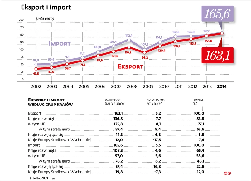Polscy eksporterzy poradzili sobie zwiększając sprzedaż na rynki Unii Europejskiej. To zaskakujące, bo europejska gospodarka w ubiegłym roku tkwiła w stagnacji, popyt powinien był być więc słaby. Tymczasem sprzedaż do Niemiec (główny odbiorca naszego eksportu) wzrosła aż o 9,5 proc., a do całej strefy euro o 6,1 proc. Firmy z Polski poradziły sobie i z gospodarczą flautą, i z negatywną kampanią, jaką rozpętano na niektórych rynkach. Przykład to Czechy – mimo prób zablokowania importu z Polski w 2014 roku wzrósł on tam o 7,4 proc.