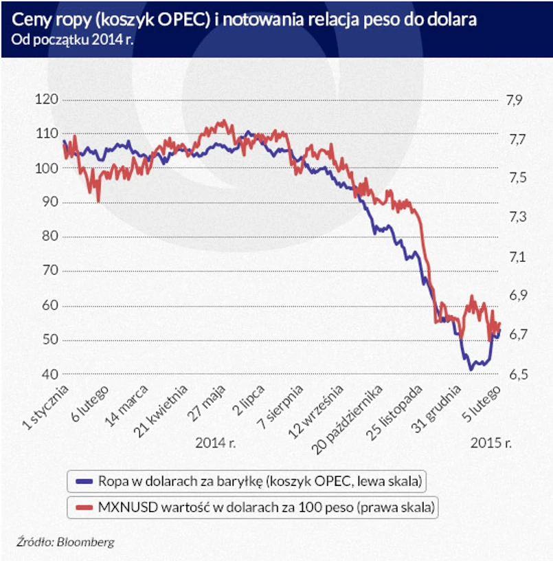 Władze Meksyku starają się utrzymać budżet w ryzach, ale spadek cen ropy naftowej daje już jednak o sobie znać. Meksyk za sprawą bardzo energicznego, wybranego w 2012 r. prezydenta Enrique Peña Nieto, wziął się za restrukturyzację swojego sektora naftowego. Postanowił w tym celu przyciągnąć zagranicznych inwestorów. Inaczej jednak wyglądało zainteresowanie Meksykiem ze strony zagranicznych koncernów naftowych wtedy, kiedy ropa kosztowała ponad 100 dolarów za baryłkę, a inaczej – tak jak obecnie – przy cenach rzędu 50 dol.