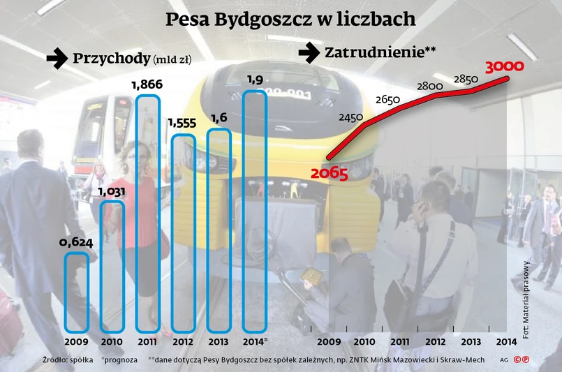 Pesa powstała na bazie Zakładów Naprawczych Taboru Kolejowego PKP, które w latach 90. stały na skraju bankructwa i zostały przejęte przez spółkę menedżerską. Dzisiaj to prężny producent, który pod względem sprzedaży jest liderem rynku taborowego w Polsce. Z nieaudytowanych danych wynika, że w 2014 r. przychód Pesy przekroczył 1,9 mld zł, z czego wypracowany zysk netto to ponad 100 mln zł.
