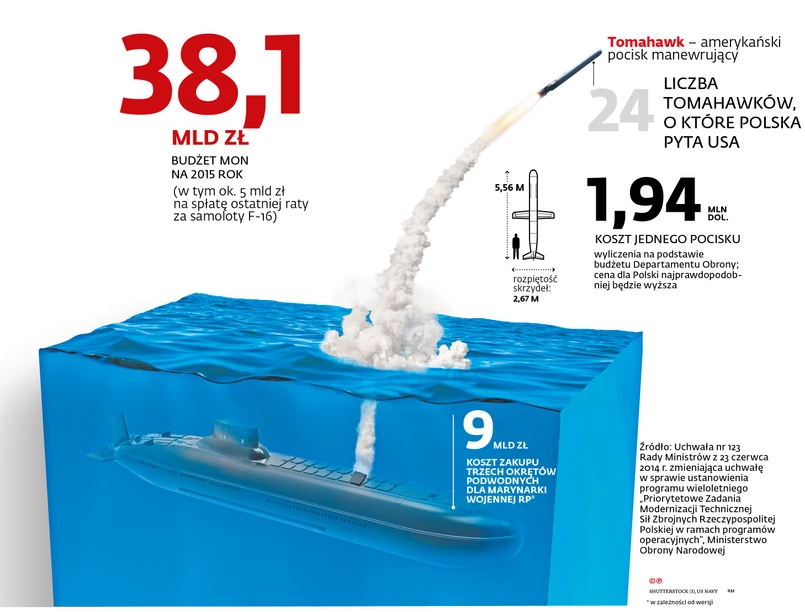 Z nieoficjalnych informacji wynika, że ministerstwo zwróciło się do Amerykanów z zapytaniem o możliwość zakupu ponad dwudziestu rakiet Tomahawk. To zaledwie o jedną sztukę więcej, niż liczyła salwa wystrzelona z dwóch amerykańskich okrętów w nocy z 26 na 27 czerwca 1993 r. w kierunku siedziby irackiego wywiadu w Bagdadzie. Stało się to w odwecie za próbę zorganizowania zamachu na b. prezydenta USA George’a Busha seniora w Kuwejcie.