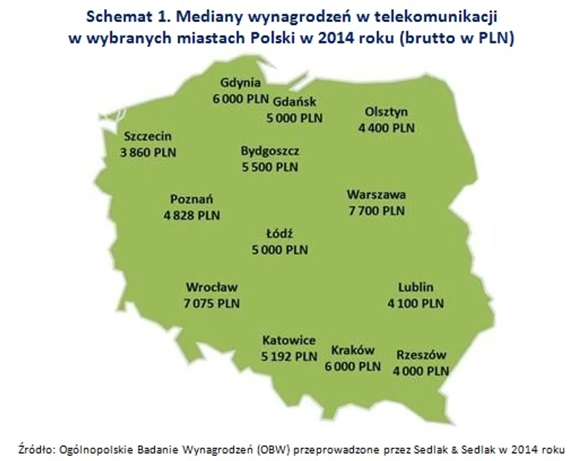 Co czwarty pracownik zatrudniony w telekomunikacji zarabiał powyżej 9 000 PLN brutto miesięcznie. Z kolei najniżej opłacane 25% pracowników branży zarabiało mniej niż 3 206 PLN brutto miesięcznie.