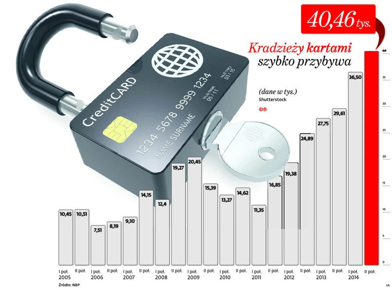 Od lipca do grudnia ubiegłego roku dokonano w Polsce 40 461 oszustw za pomocą kart płatniczych. To wzrost w stosunku do pierwszego półrocza o ok. 11 proc. i najgorszy wynik w historii tych badań w Polsce – wynika z danych Narodowego Banku Polskiego, zawartych w raporcie na temat funkcjonowania polskiego systemu płatniczego w drugiej połowie 2014 r.