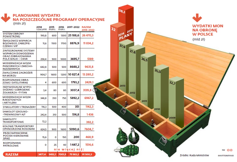 O tym, że rozpisany na lata 2014–2022 program modernizacji armii ma być impulsem dla przemysłu zbrojeniowego, politycy mówili wielokrotnie. – Serce przemysłu zbrojeniowego będzie biło w Radomiu, to powód do dumy – zapowiadała pół roku temu premier Ewa Kopacz na podpisaniu kontraktu dla Mesko, które ma dostarczyć amunicję wartości prawie ćwierć miliarda złotych do czołgów Leopard. Ponad 40 mln zł dofinansowania na modernizację dostał oddział fabryki w Pionkach.
