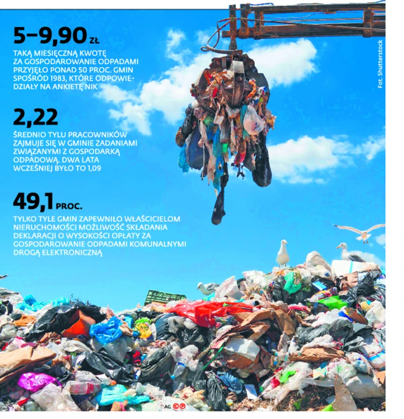 Kontrolerów NIK niepokoi też ryczałtowy sposób rozliczeń z firmami śmieciowymi, na który zdecydowało się aż 61 proc. gmin. W przypadku przeszacowania ilości wyprodukowanych odpadów gmina rozliczająca się ryczałtowo płaci więcej, niż powinna, a firma odbierająca śmieci pobiera opłatę za to, czego nie wywiozła. Co prawda w początkowym okresie wdrażania systemu ryczałt może być korzystny, gdy trudno oszacować ilość odpadów, jednak zdaniem NIK po dwóch latach gminy powinny już potrafić skalkulować, ile śmieci w ciągu roku mają do wywiezienia, i płacić tylko za te rzeczywiście zagospodarowane. „W ostatecznym rozrachunku tracą przede wszystkim właściciele nieruchomości” – kwituje NIK.
