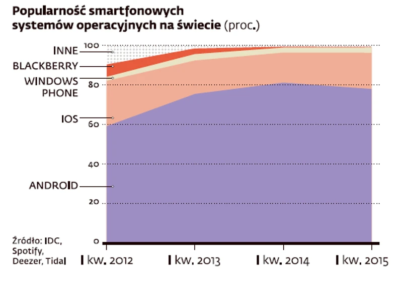 Zresztą Spotify od dawna nie ma już monopolu na muzyczny streaming. W ślad za nim powstały serwisy takie jak Deezer czy Tidal (właścicielem tego drugiego od niedawna jest muzyk Shawn Carter, znany szerzej jako Jay Z). Apple dotychczas cieszył się opinią niezrównanego innowatora. Firma nie tylko upowszechniła smartfon i tablet czy wymyśliła oparty na nich model biznesowy (pobieraniu prowizji od sprzedanych na mobilne urządzenia aplikacji), ale też jako pierwsza pokazała, że można zarabiać na legalnej dystrybucji muzyki przez internet. Czy to oznacza, że gigant z Cupertino, zamiast wyznaczać trendy, zaczął za nimi podążać?