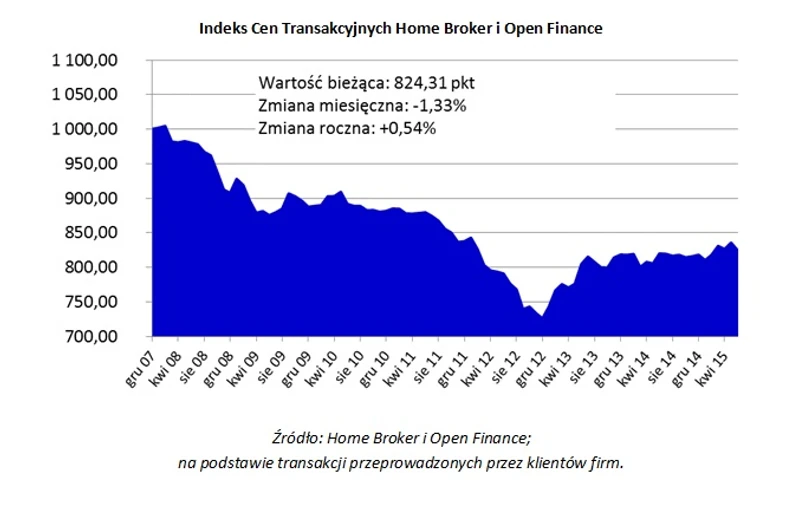 Najnowsze notowanie Indeksu Cen Transakcyjnych to 824,31 pkt, co jest wartością o 0,54 proc. wyższą niż przed rokiem i o 2,45 proc. Od kilku miesięcy indeks przebywa ponad poziomem 820 pkt, poniżej którego spędził poprzednie prawie dwa lata. Obserwujemy okres stabilizacji cen mieszkań z tendencją do lekkich wzrostów. Indeks wyliczany jest na podstawie transakcji na rynku mieszkaniowym dokonanych przez klientów Home Brokera i Open Finance, pokazuje on realną zmianę cen na rynku mieszkaniowym w największych miastach.