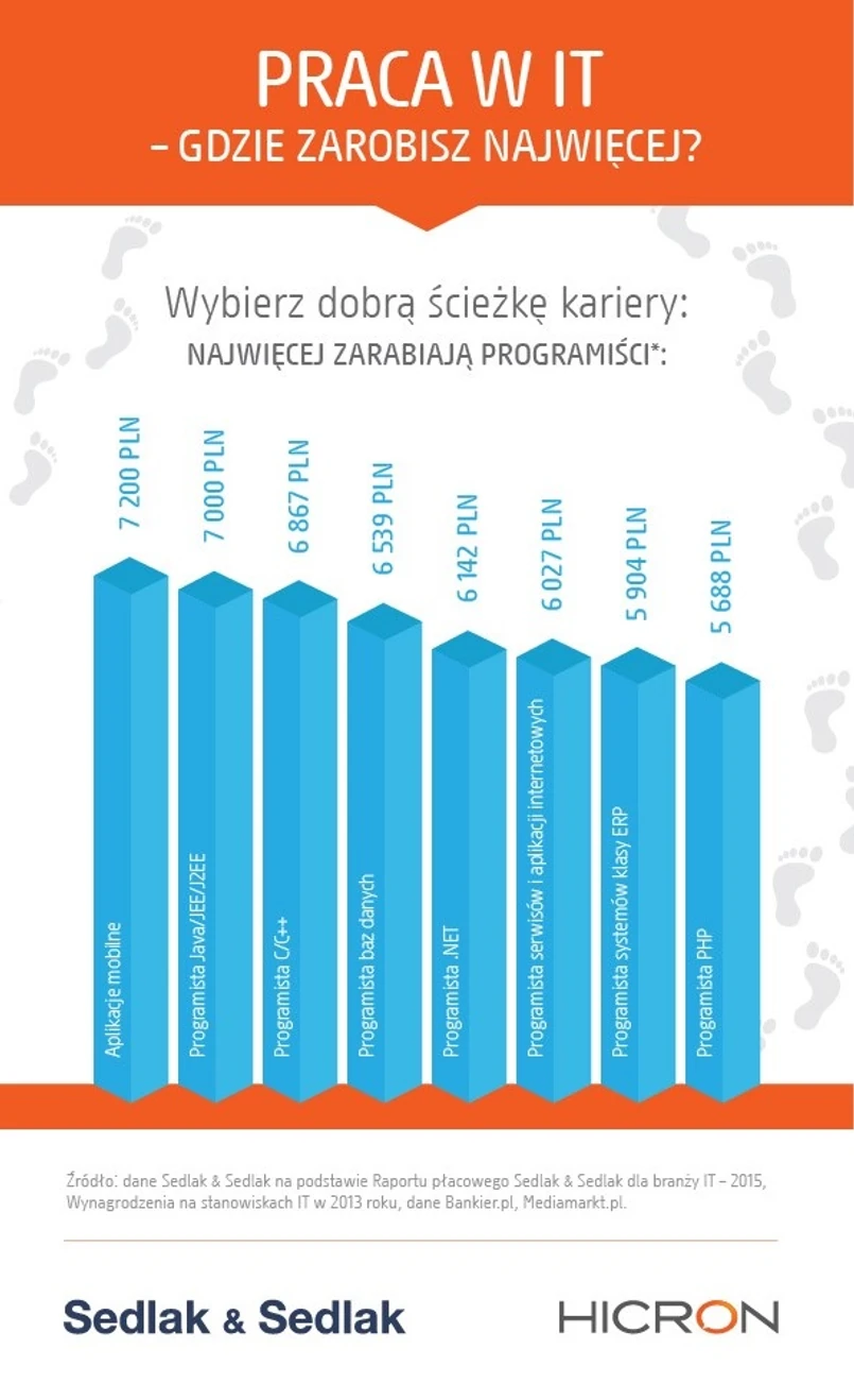 – Ranking najlepiej opłacanych języków programowania otwierają rzadkie technologie (np: COBOL, RUBY). Generalnie im rzadsza technologia, tym wyższe wynagrodzenie. Mamy tu często do czynienia z sytuacją, w której to pracownicy dyktują warunki – firmy są w stanie zapłacić takim programistom kilkanaście tysięcy złotych miesięcznie, a czasami nawet więcej. Jeśli chodzi o bardziej popularne technologie, najlepiej opłacanym obszarem są aplikacje mobilne, gdzie mediana wynagrodzeń miesięcznych brutto doświadczonych programistów wynosi 7 200 PLN. To około dwa razy więcej niż średnie wynagrodzenie według GUS. Natomiast jedna czwarta specjalistów od aplikacji mobilnych zarabia ponad 8 833 PLN brutto miesięcznie – mówi Damian Pokrywka, Specjalista ds. analiz wynagrodzeń z Sedlak & Sedlak.