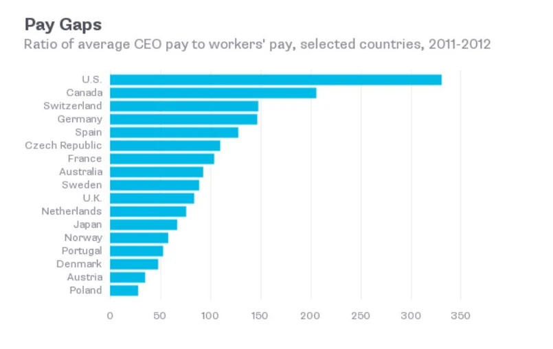 Dyrektorzy generalni 350 firm, które znajdują się na liście Standard & Poor’s 500, zarabiali w 2013 roku 331 razy więcej niż ich pracownicy. Stosunek ten w 1983 roku wynosił „zaledwie” 46 do 1 – wynika z raportu AFL-CIO (największej amerykańskiej centrali związkowej).