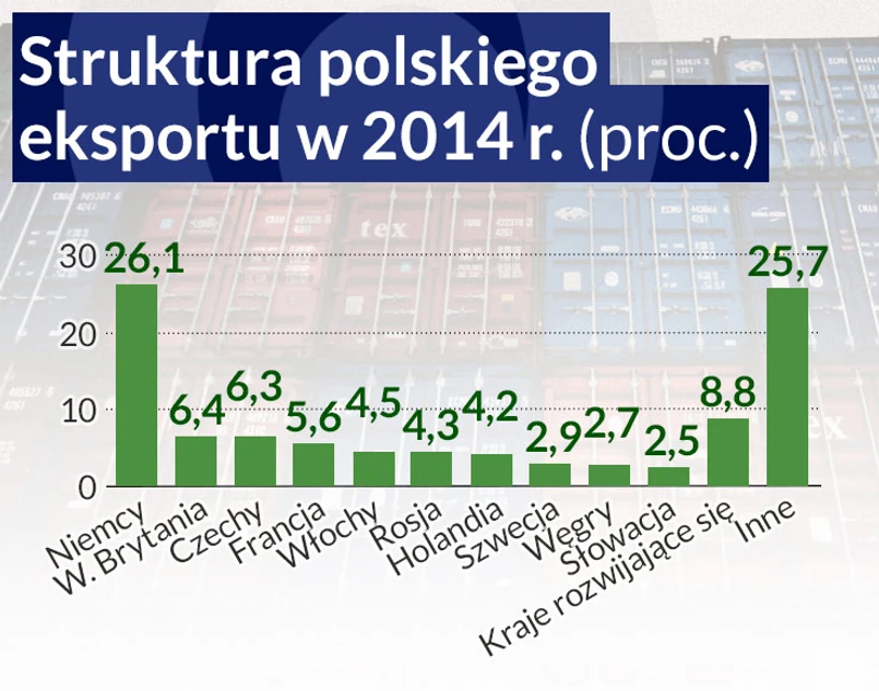 Polscy eksporterzy więcej uwagi poświęcają szansom na rynku unijnym. Pomimo tego, że sprzedaż do Rosji spadła w 2014 r. o 14 proc., ogólna wartość eksportu była o 5,2 proc. lepsze niż w roku wcześniejszym i wyniosła 163,1 mld euro. 53 proc. eksportu trafiło na rynki krajów strefy euro (wzrost o 9,4 proc.).