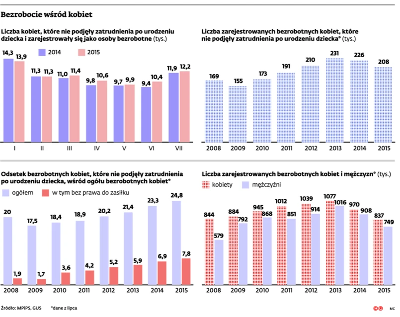 O 18 tys. zmniejszyła się jednak ogólna liczba bezrobotnych kobiet, które stały się matkami. Część z tych, które były w rejestrach pośredniaków, znalazła zatrudnienie dzięki poprawie sytuacji na rynku pracy. Jednak z uwagi na to, że liczba bezrobotnych kobiet skurczyła się zdecydowanie bardziej, bo o 134 tys., udział pań, które stały się matkami, w ogólnej liczbie bezrobotnych kobiet zwiększył się w tym czasie o 1,5 pkt proc.