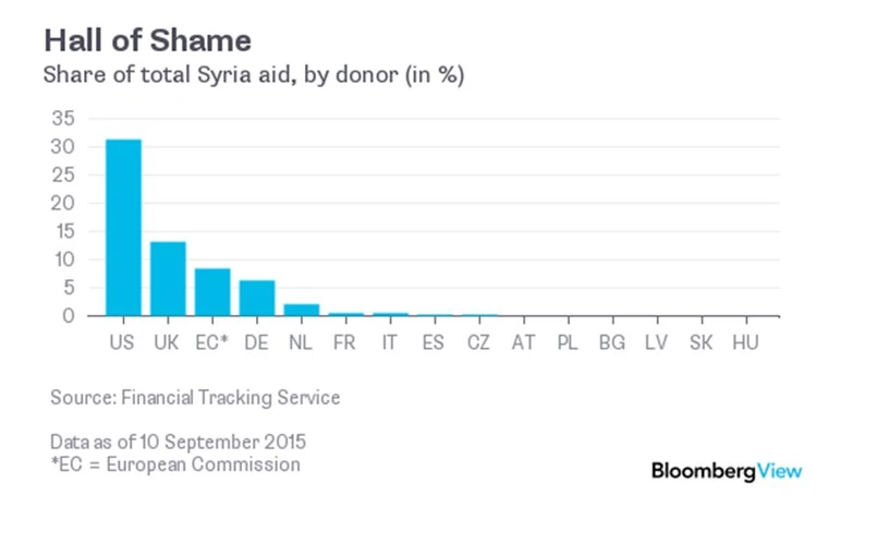 Po drugie, Bruksela powinna pomóc ONZ, która dziś opiekuje się zdecydowaną większością 4 mln syryjskich imigrantów, którzy znajdują się dziś w Jordanii, Libanie i Turcji. Jak widać na jednym z wykresów, Europejczycy robią niewiele w tej kwestii.