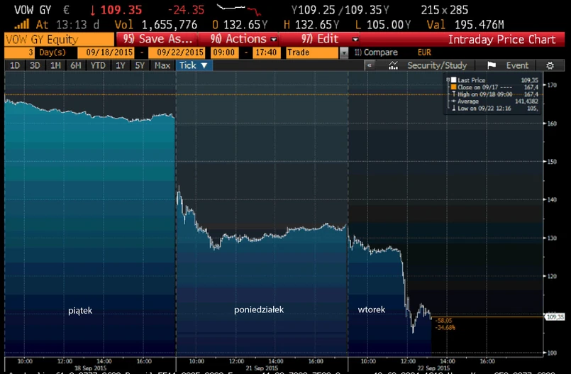 Tymczasem kurs akcji koncernu pikuje już drugi dzień. Około południa akcje Volkswagena znowu traciły na giełdzie we Frankfurcie ponad 20 procent.