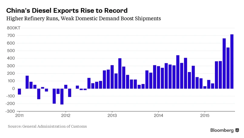 Kraj Środka wyeksportował w zeszłym miesiącu rekordową ilość surowca zaraz po tym, jak wysłał za granicę bezprecedensowe ilości stali i aluminium. Najsłabszy wzrost gospodarczy w Chinach od lat 90. zmniejsza krajowy popyt na surowce, a rafinerie, fabryki i huty zmagają się po latach ekspansji z nadmiarem mocy produkcyjnych.