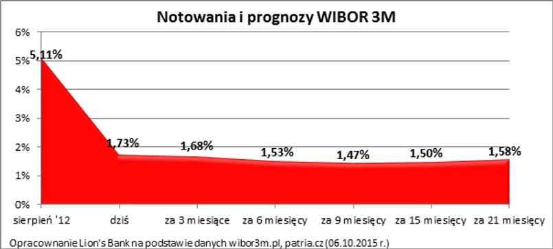 Gdyby tego było mało, to od kilku tygodni prognozy graczy rynkowych mówią o coraz bardziej prawdopodobnym dalszym obniżaniu kosztu pieniądza w gospodarce. Przypomnijmy, że już dziś podstawowa stopa procentowa, od której zależy oprocentowanie zarówno kredytów jak i lokat wynosi jedynie 1,5% i jest to najniższy wynik w historii. Pod koniec 2012 roku, kiedy zaczął się ostatni cykl obniżek stóp procentowych, główna stawka była na poziomie 4,75%. O tym ja sytuacja może się zmieniać w przyszłości można wnioskować na podstawie kontraktów terminowych na WIBOR. Stawka ta jest mocno powiązaną z poziomem głównej stopy procentowej. Z prognoz wynika, że w najbliższym czasie oprocentowanie lokat może nawet spaść, a rynek nie wyklucza jednej obniżki stóp procentowych w przyszłym roku oraz utrzymania niskiego koszty pieniądza przez przynajmniej dwa lata.