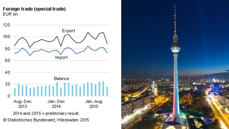 Niemiecki eksport zanurkował w sierpniu o 5,2 proc. w porównaniu z poprzednim miesiącem – poinformował Federalny Urząd Statystyczny. Prognozy analityków zakładały, że spadek ten wyniesie tylko ok. 0,9 proc. Tak mocnego spadku eksportu nie notowano tu od stycznia 2009 roku. Import obniżył się w tym czasie o 3,1 proc.