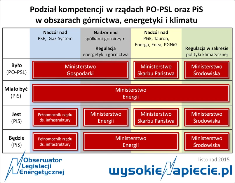 Z kolei dotychczasowe kompetencje regulacyjne w sektorach elektroenergetycznym, gazowym i węglowym przejdą z rąk Ministra Gospodarki w ręce Ministra Energii.