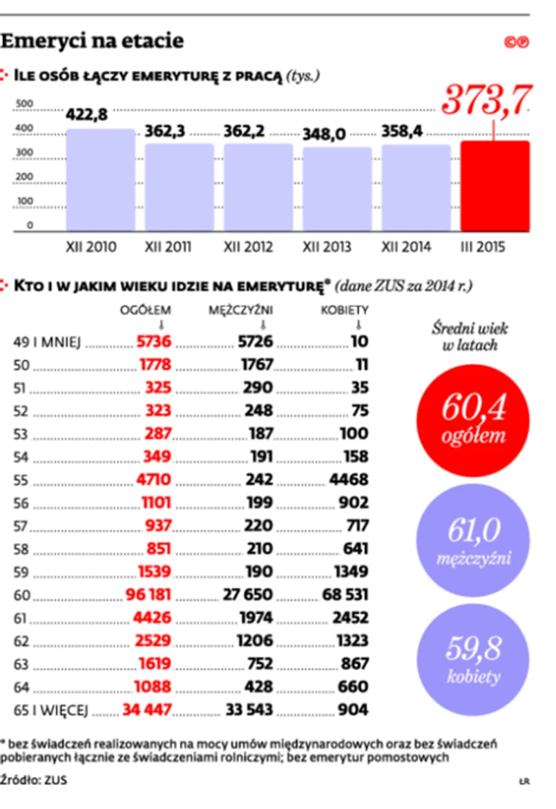 Drugi powód rozważania zmian to kalkulacje, że dzięki niemu będą się zwalniały miejsca pracy dla młodszych pracowników. Z najnowszych danych ZUS, że maksymalnie taki wpływ dotyczyłby nieco ponad 2 proc. miejsc pracy. Ze statystyk wynika, że w marcu łączyło pracę z pobieraniem świadczenia 370 tys. osób (ok. 7 proc. emerytów) wobec 16-milionowego rynku pracy.