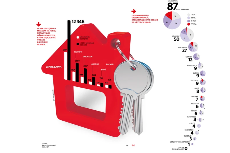 Takie dane płyną ze statystyk zgromadzonych przez serwis RynekPierwotny.pl. Warszawa może się pochwalić nie tylko największą liczbą obiektów, lecz także największą liczbą mieszkań.